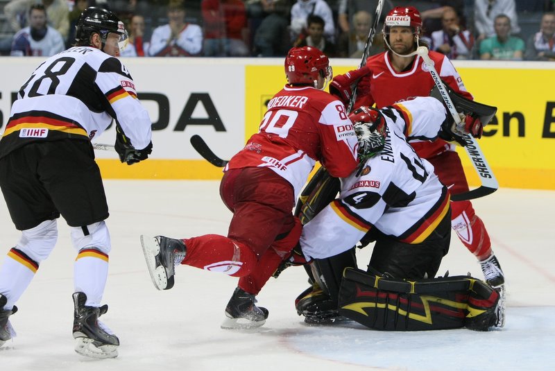 En deuxième période, Mikkel Bødker, qui amène un danger constant, finit par redonner l’avantage aux Danois par un but de haute couture : depuis le milieu de la patinoire, il dribble deux adversaires, fait le tour de la cage puis marque du côté opposé en utilisant un ricochet sur le patin du gardien Dennis Endras. La réponse vient cette fois d’Alexander Barta, servi par le treizième attaquant Marcus Kink dans le slot pour le 2-2. L’Allemagne est moins compacte qu’à l’accoutumée, elle a dans les jambes le match long et usant contre la Finlande (perdu aux tirs au but hier), mais elle reste compétitive. En fin de tiers, Hospelt s’écrase sur le gardien Frederik Andersen pendant une pénalité différée et André Rankel manque une cage ouverte peu après.