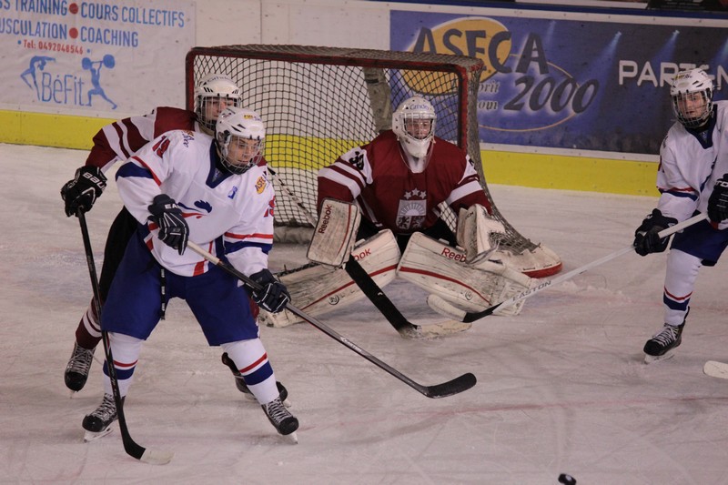La Lettonie entame fort la rencontre. A la quatrième minute, le capitaine Rodrigo Abols donne le ton et ouvre le score (1-0 à 03’24 »). Une minute plus tard, l’inévitable Roberts Locans double la mise (2-0 à 04’35 »). Deux buts en une minute, ce qui pousse Romain Guibet à poser un temps mort. Les Bleuets réagissent bien et conservent mieux le palet. Ils obtiennent même un jeu de puissance pour un cinglage de Lazarevs.
