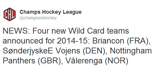 6 ligues et 26 clubs fondateurs (licence A) participeront d’office à la compétition. Les autres places ont été attribuées sur critères sportifs au sein de 6 ligues fondatrices, les nommés devant atteindre au moins les demi-finales de leur championnat (licence B). Enfin, certains clubs extérieurs aux ligues fondatrices ont été retenus : les fameuses wild cards (licence C). C’est donc par ce biais que Briançon est invité, en tant que champion de France, à participer à la compétition. Ils font partie d’une vague de quatre invitations comprenant également SonderjyskeE (Danemark), Nottingham (EIHL, Royaume-Uni) et Vålerenga (Norvège).