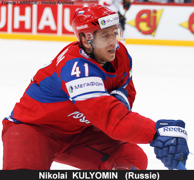Attaquants : Aleksandr Ovechkin (C) – Vadim Shipachyov – Sergei Plotnikov ; Sergei Shirokov (A, 2′) – Aleksandr Burmistrov – Nikolaï Kulemin ; Viktor Tikhonov (2′) – Andrei Loktionov – Evgeni Kuznetsov (2′) ; Anton Glinkin – Ilya Zubov – Mikhaïl Varnakov.