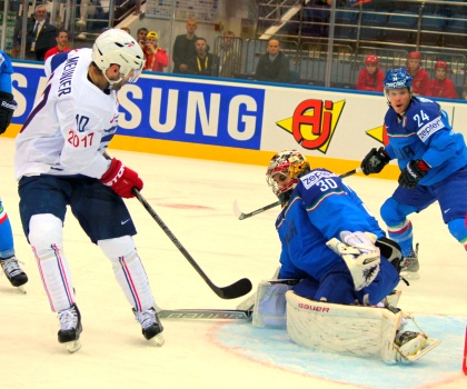 Le jeu devient un peu fou : Bellissimo rate le palet en sortant de sa cage, sans qu’un Français soit sur la trajectoire, et sur la contre-attaque, Marco Insam signe une excellente déviation d’un tir de Borgatello, sauvée du bout de la jambière par Cristobal Huet.