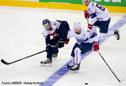 Dave Henderson et Pierre Pousse ont opéré plusieurs changements. Luc Tardif quitte l’alignement, remplacé par Eliot Berthon qui fait ses débuts en championnat du monde. De plus, l’attaquant de NHL Antoine Roussel remplace Fleury sur la deuxième ligne et forme ainsi un trio de choc avec les deux meilleurs joueurs offensifs Stéphane Da Costa et Pierre-Édouard Bellemare.