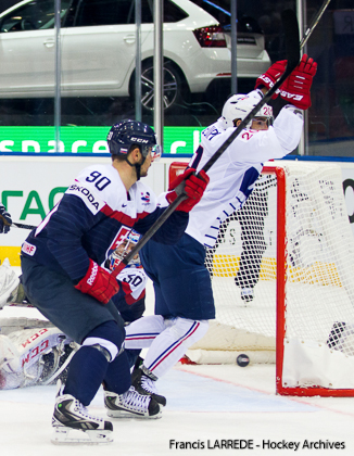 La quatrième ligne française, très peu utilisée hier, amène de la fraîcheur, et Nicolas Ritz est accroché par Sloboda sur un centre d’Eliot Berthon. Encore faut-il concrétiser en supériorité numérique, où rien ne semble fonctionner à l’instar des deux perdus par Bellemare. Mais Damien Fleury réenclenche la marche avant en perçant toute la défense, et le palet ressort à la bleue par Baptiste Amar qui bénéficie enfin d’un peu de trafic dans le slot pour réduire le score d’un lancer flottant (2-1, 26’23 »).
