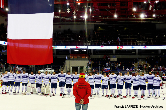 Dave Henderson (entraîneur de la France) : « Au premier tiers, nous avons eu du mal à suivre la vitesse slovaque. Mais nous n’avons rien lâché à 1-3 et, après les deux buts sur le même jeu de puissance, nous avons continué à pousser. C’était un match de caractère, et nous sommes évidemment très heureux. Nous nous sommes regardés dans le miroir après le match de l’Italie, qui mérite sa victoire, et le caractère fait la différence. Revenir gagner 5-3 après être mené de deux buts, c’est un énorme effort, un grand sacrifice, notamment pendant le trois contre cinq, avec des tirs bloqués par Janil, Roussel, Auvitu, Treille, Manavian… Le jeu de puissance a été plus efficace qu’hier. Nous avons changé les deux blocs de supériorité. Il y a eu une réunion de blocs hier. Nous leur avons expliqué pourquoi ces changements : rééquilibrer finesse et force, équilibrer les temps de jeu. Yorick et Meun’s ne sont plus aussi frais qu’avant, donc nous les avons enlevés du jeu de puissance pour les réserver en infériorité. Du coup, ils étaient frais en fin de match, et Manavian a été très fort à la fin. C’est une équipe de caractère, des joueurs que l’on connaît depuis dix ans, que l’on voit tous les étés aux stages. C’est ce que nous cherchons : le talent oui, l’intégration au groupe, mais aussi le caractère. Nous voulons des joueurs qui vont au bout de leurs efforts, qui ne lâchent rien. Les leaders ont parfaitement joué leur rôle dans le vestiaire, pour calmer tout le monde. »