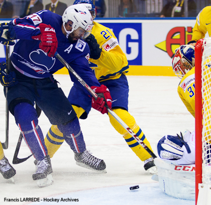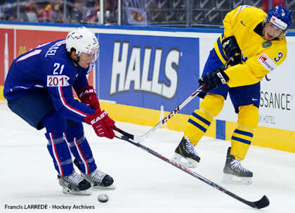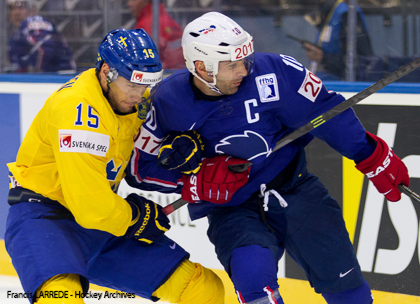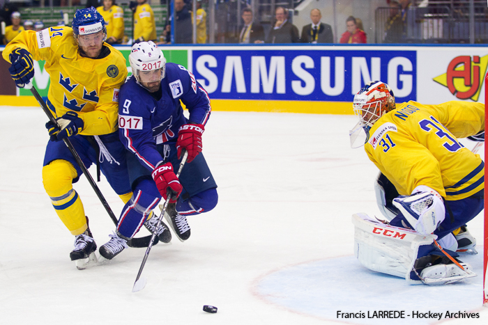Antoine Roussel (attaquant de la France, photo de gauche) : « Nous avons eu beaucoup d’occasions… Une barre, Pi-Ed en backdoor, la dernière action… Les prochains matchs seront du même style que la Suède. »