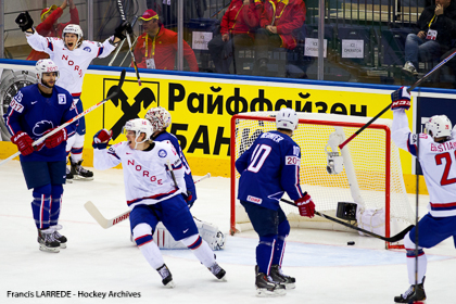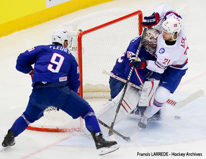 Mieux encore, un tir en pivot de Stéphane Da Costa est dévié par Antoine Roussel, le patron du slot (3-2, photo de droite). Ces trois buts consécutifs ne doivent rien au hasard : la France a comptabilisé 18 tirs cadrés dans la deuxième période pour en arriver là !