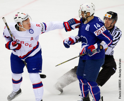 Désignés joueurs du match : Antoine Roussel pour la France et Mats Trygg pour la Norvège.