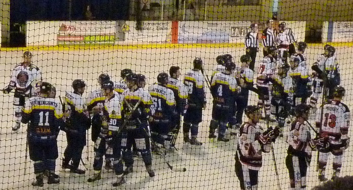 Remontés comme la semaine dernière après avoir mené de deux buts, les joueurs d’Antoine Richer reprennent les devants en début de troisième période. Guillaume Richard bloque les velléités de Younes Baazzi, parti défier Ondrej Pozivil. La mise au jeu s’effectue sur sa droite, d’où Joé Dubé réussit un coup de maître en lançant directement vers le dessous de la barre, sitôt le disque remis en jeu (3-2 à 42’21″). Pris de court, Richard retrouve ses esprits devant Mikusovic, dont la déviation était recherchée par son compère Janik. Son vis-à-vis reste chaud quand Jurik vient le défier à son tour, et s’apprête à souffrir car la ligne Vigners-Kapicka-Jeslinek monopolise le caoutchouc au détriment du troisième bloc nordiste, contraint de résister par tous les moyens, comme l’illustre le plongeon de Derepper. Marc-André Martel multiplie les parades, mais est une deuxième fois surpris par Bryan Ten Braak, positionné dans son dos (3-3 à 45’35″).