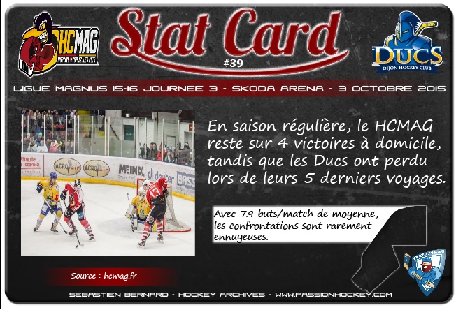 Morzine/Avoriaz/Les Gêts – Dijon. Bilan du HCMAG jusqu’ici en championnat : deux matchs, deux défaites, six buts marqués et treize encaissés. Bilan de Dijon jusqu’ici en championnat : deux matchs, deux défaites, six buts marqués et treize encaissés. Le duel promet du coup d’être serré, ce soir, entre les Pingouins et les Ducs. Les Haut-Savoyards vont toutefois bénéficier d’un petit avantage psychologique. Les deux équipes se sont déjà croisés cette saison. C’était en Coupe de la Ligue. Et Morzine/Avoriaz/Les Gêts s’était imposé. Avec un seul but d’écart, évidemment (5-4). Mais attention, Dijon apprécie le Chablais. Ces quatre dernières années, le DHC s’y est imposé à trois reprises en six déplacements, saison régulière et play-offs confondus. Côté morzinois, on jouera ce soir sans Jakub Sindel. Touché par un coup de crosse en plein visage cette semaine en Coupe de la Ligue, l’attaquant tchèque souffre d’une fracture de la mâchoire. Son absence devrait durer trois bons mois. Il rejoint à l’infirmerie Florian Sabatier, victime lui d’une commotion cérébrale. Engagé cette semaine pour remplacer Jakub Cech, le Slovène Matija Pintaric devrait garder pour la première fois les cages dijonnaises.