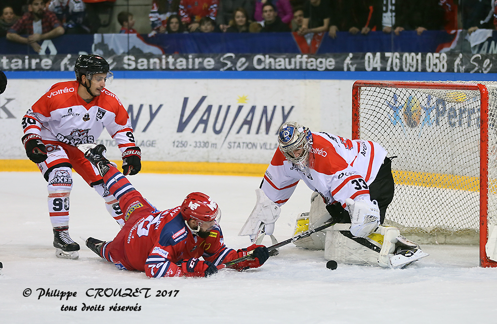 Le troisième tiers débute à quatre contre quatre mais au moment où Grenoble peut évoluer une minute en supériorité numérique, Champagne se fait sanctionner pour un faire trébucher accidentel en zone offensive. Retour à quatre contre quatre, donc, puis à cinq contre cinq alors que les deux équipes se neutralisent.