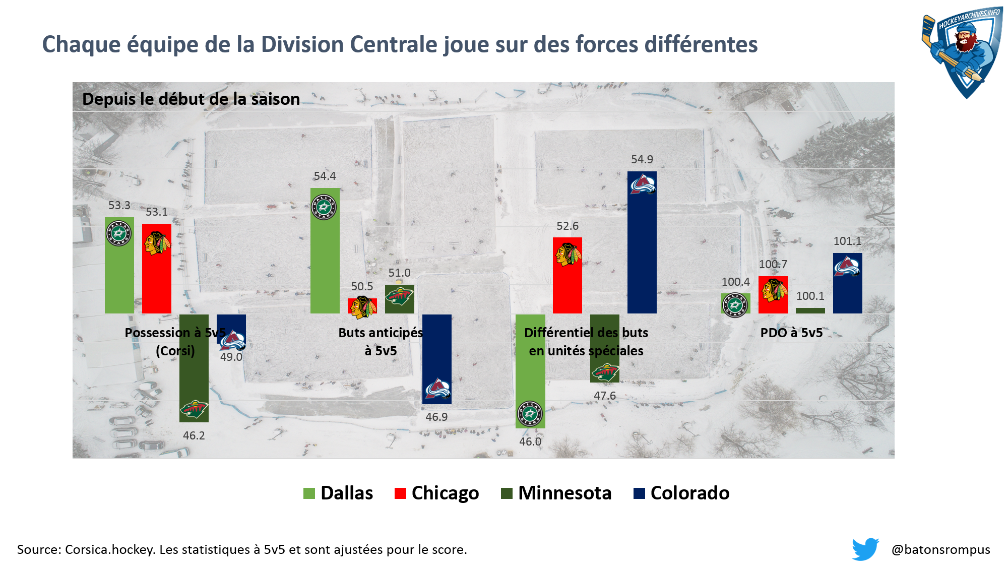 On s’en doutait, c’est encore pire que prévu. La Division Centrale est bel et bien la plus relevée de la Ligue Nationale de Hockey cette saison. La faute à une grande homogénéité alors que les sept équipes peuvent encore prétendre aux playoffs. Dallas, Chicago, Minnesota et Colorado se livrent ainsi à une lutte farouche pour les places en Wild-card derrière les grosses écuries que sont Winnipeg, Nashville et St Louis. Qui pourrait sortir vainqueur de ce duel à quatre ?