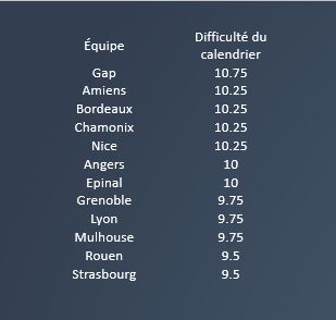 Au final, seule Gap a été un peu désavantagée car nous n’avons eu d’autre option de lui faire affronter deux fois Grenoble et une fois Rouen. Mais dans l’ensemble, une logique égalitaire est respectée, ce qui est primordiale pour l’analyse des données recueillies à propos de la performance des équipes, sujet qui fera l’objet de prochains articles.