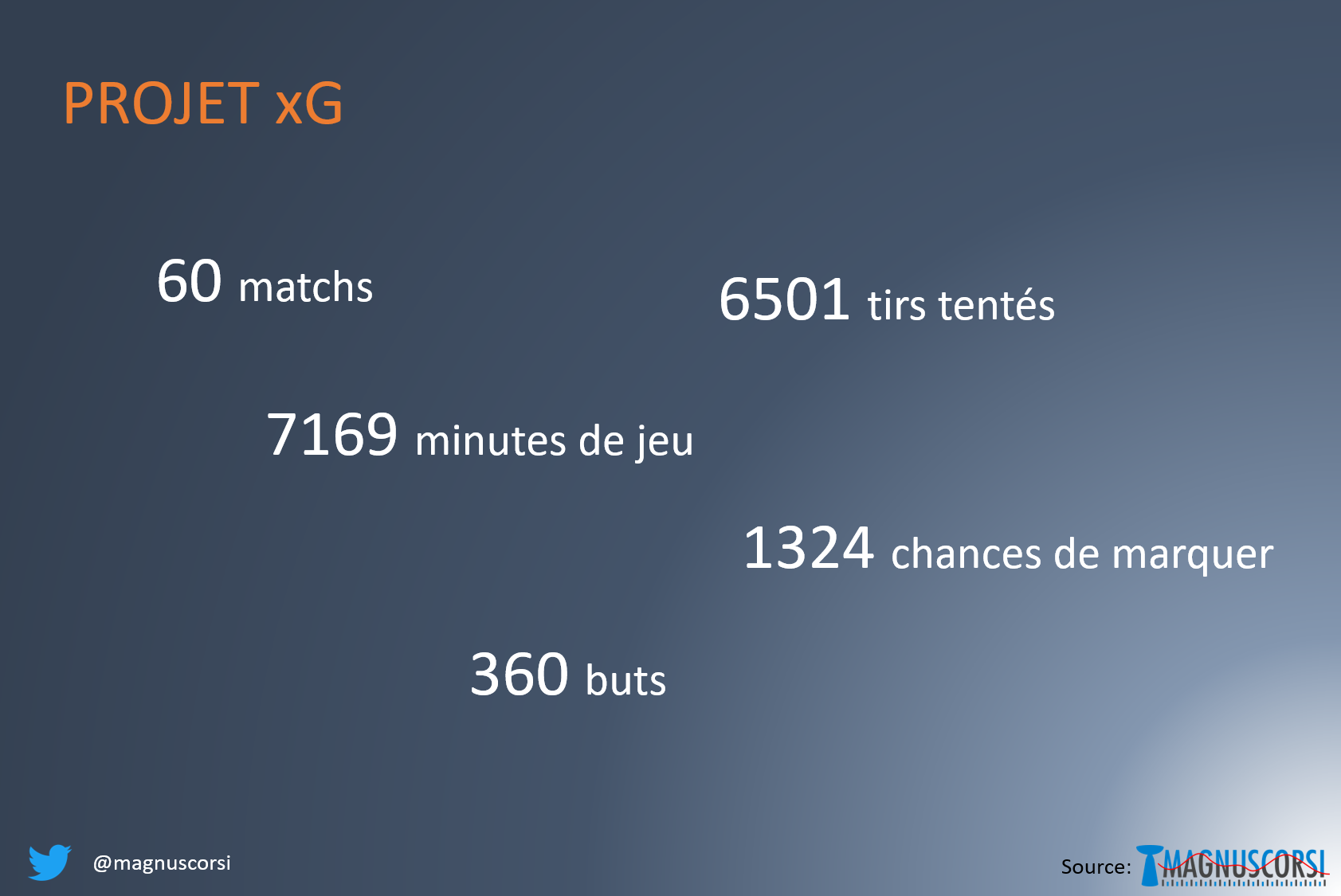 Le cœur du projet xG est donc de pouvoir attribuer des valeurs différentes à chacune de ces zones, suivant toutes les situations de jeu. Cela représente au total 17 scénarios (7 à cinq contre cinq, un par zone, et 2 zones par autre situation de jeu) pour lesquels il fallait trouver des données et modéliser la formule des Buts anticipés.