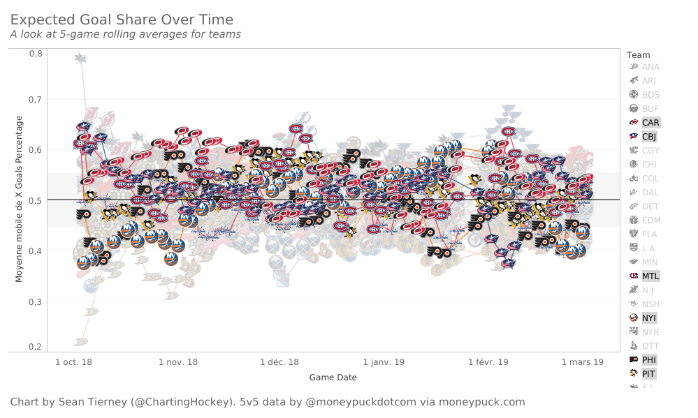 Point de Yakuline cette semaine mais quelques tendances assez fortes à l’aide de ces courbes d’évolution des buts anticipés. La principale nouvelle est que les faux-prétendants sont en train de décrocher pour de bon.