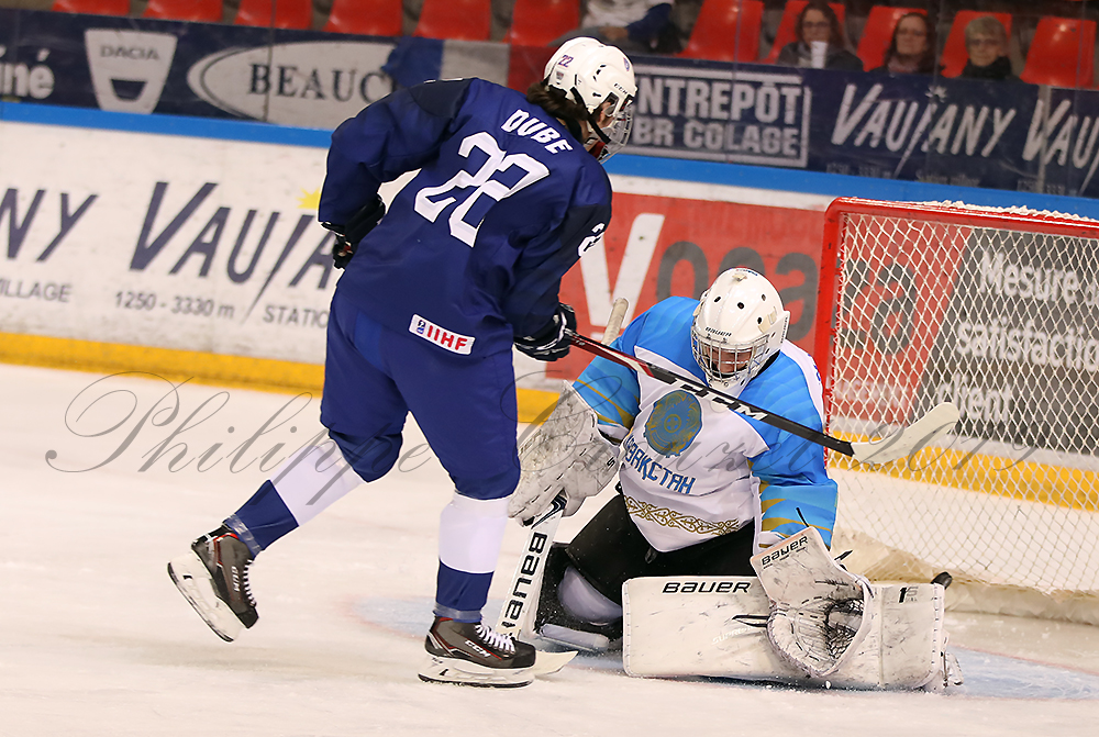 Au début de la deuxième période, une belle échappée de Dubé sur l’aile gauche est neutralisée irrégulièrement par Shaikhmeddenov. Le power-play français a du mal à s’installer. Retour à cinq contre cinq donc et douche froide pour les Bleus : le Kazakshtan marque rapidement sur un lancer de la bleue de Shaikhmeddenov, le traffic devant la cage gêne Duquenne et Saiko marque sur le rebond (1-3, 23’39).