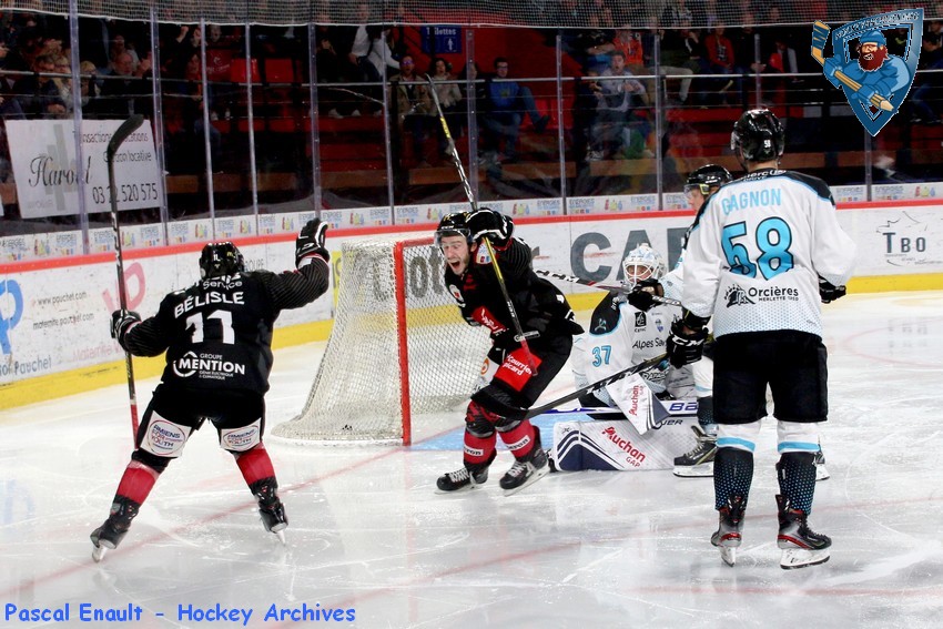 Petite période de faux-rythme après ce but des visiteurs, avec beaucoup de pertes de palet de chaque côté. Les Rapaces vont une nouvelle fois se mettre à la faute, et même se retrouver en double infériorité numérique après une première faute de Jekimovs sur Belisle, puis une crosse haute de Correia sur Verrier. Le jeu de puissance s’installe assez facilement pour les Gothiques qui mitraillent la cage d’Ylönen mais manquent de précision. C’est finalement Tommy Giroux qui trouve la faille après un très bon décalage de Belisle et un petit cafouillage devant l’enclave. Le but sera validé après un visionnage des images par les arbitres du soir (2-1, 38’08).