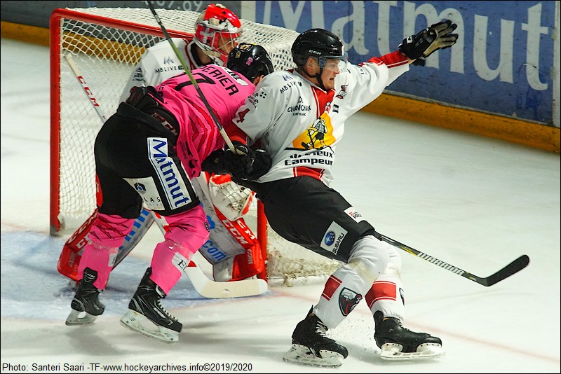 La fin de match ressemblait, de près ou de loin, aux deux dernières rencontres perdues sur l’île Lacroix car Chakiachvili, puis Ritz, étaient sanctionnés par les arbitres principaux qui offrent sur plateau un six contre trois pendant 39 secondes aux Pionniers. Robert Sabol ayant laissé sa cage au profit d’un attaquant supplémentaire. Joonas Sammalmaa a bien eu une rondelle de match (59’41) mais le trio Mäkinen-Koivisto-Crinon (aidé pour la dernière mise en jeu par Bouvet grâce au coaching de Lhenry) a su préserver une victoire au caractère, acquise par les Dragons avec le bleu de chauffe, loin de maîtriser leur hockey.