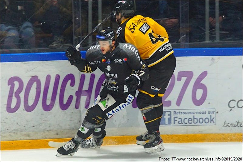 Joël Caron : « On a eu un départ un peu difficile. On a connu un peu de misère en tout début de match mais on a su rétablir les choses et gagner le tiers. Ensuite, on a profité de leur indiscipline pour faire la différence. On a eu beaucoup de power-play. À 5-0 à la fin du deuxième tiers, on savait que c’était plié. Il fallait juste bien finir. C’est ce que nous a demandé Fabrice Lhenry. On a laissé quelques contres et heureusement que Matija Pintaric était là mais, dans l’ensemble, on a quand même bien fait. C’est une bonne manière de finir l’année. On n’a pas eu le début de saison qu’on voulait mais, depuis quelques semaines, cela va mieux et, maintenant, on a à cœur de débuter la nouvelle année, dimanche (contre Anglet), comme on vient de finir celle-ci. »