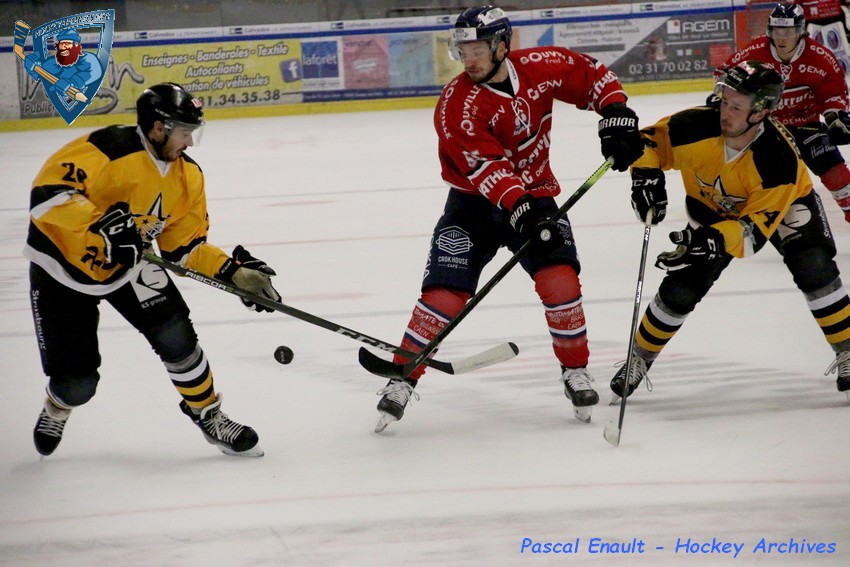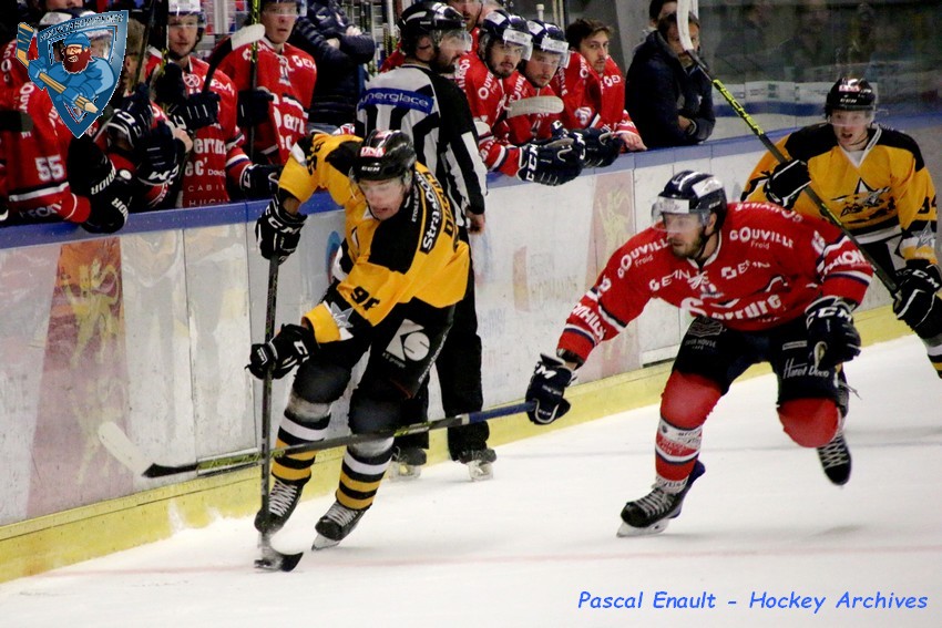 Caen possède la meilleure défense et sans doute le meilleur gardien de la division. C’est un fait. C’en est aussi la plus faible attaque, et la partie de ce soir aura pu le vérifier. Les premiers relanceurs sont défenseurs, les stratèges Lavonen ou Halas tournicotent bien mais manquent de finition, et de finisseurs pour les épauler, c’est sans doute là l’une des faiblesses de l’effectif normand. Les play-offs, probablement joués contre les « voisins » brestois, ne seront sans doute pas aisés à aborder si le réalisme peine à être concrétisé.