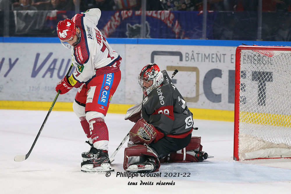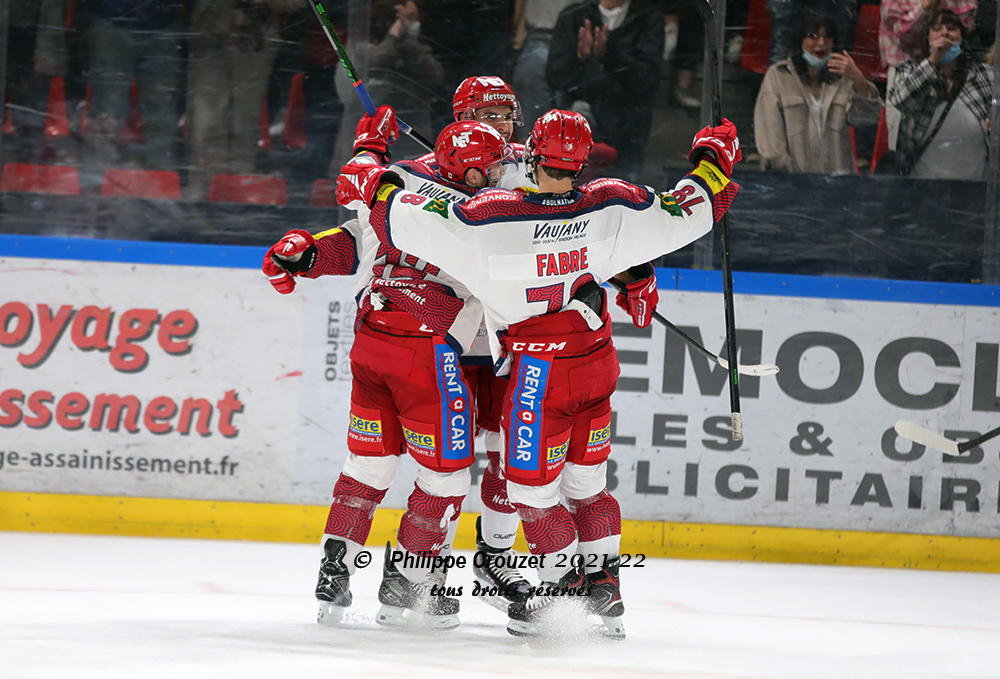 Après un premier tiers qu’on pourrait qualifier de rodage, les Brûleurs de Loups ont fait exploser la défense des Boxers au deuxième tiers-temps. Pendant quarante minutes de domination quasi permanente, les Grenoblois ont marqué quatre buts pour définitivement enterrer les espoirs bordelais dans cette rencontre. Avant de corser l’addition en fin de match face à des Boxers diminués dont le banc se réduisait à peau de chagrin. Tout le monde a participé à cette démonstration de force : sept buteurs différents pour huit buts, seul Adel Koudri signant un doublé alors que son compagnon de ligne, Dylan Fabre, y allait aussi de son but. Le jeune Matias Bachelet en a profité pour marquer son premier but en professionnel, l’héritage familial est en marche. Aurélien Dair a été de tous les bons coups et sa ligne avec Treille et Champagne fut l’une des plus actives ce soir. Défensivement, les Brûleurs de Loups n’ont pas trop souffert mais Stepanek a quand même réussi à préserver son deuxième blanchissage de la saison après celui face à Amiens. Huitième victoire consécutive donc pour les Brûleurs de Loups qui ont mis la manière ce soir avant d’enchaîner avec un week-end haut-alpin puisqu’ils joueront Gap vendredi et Briançon dimanche.