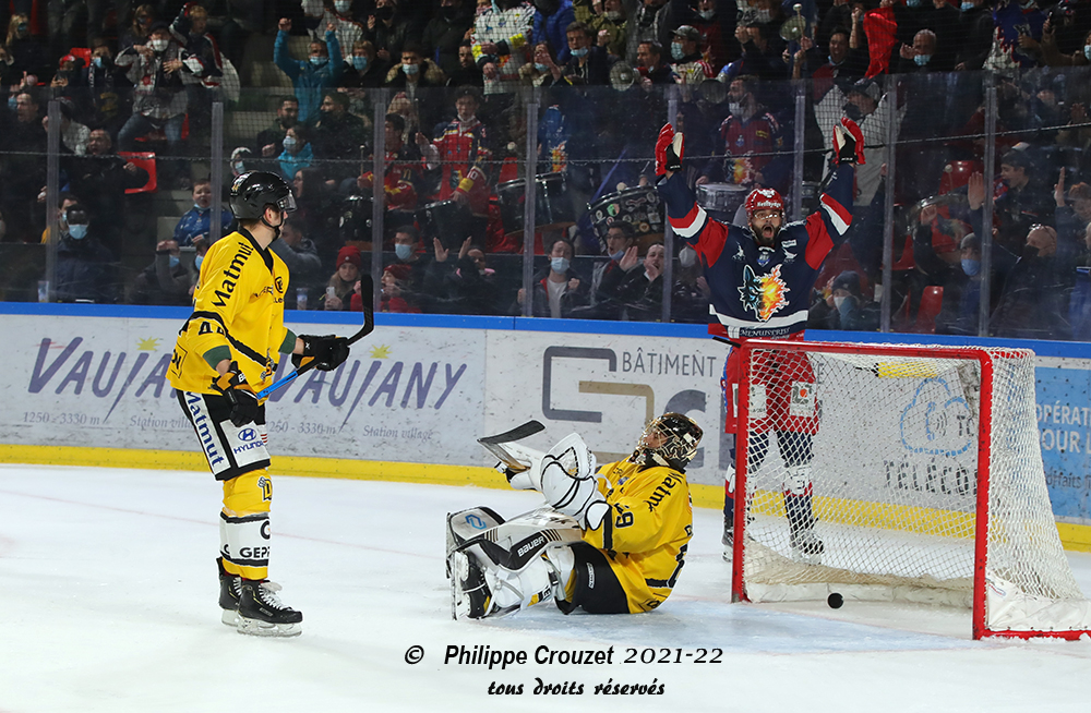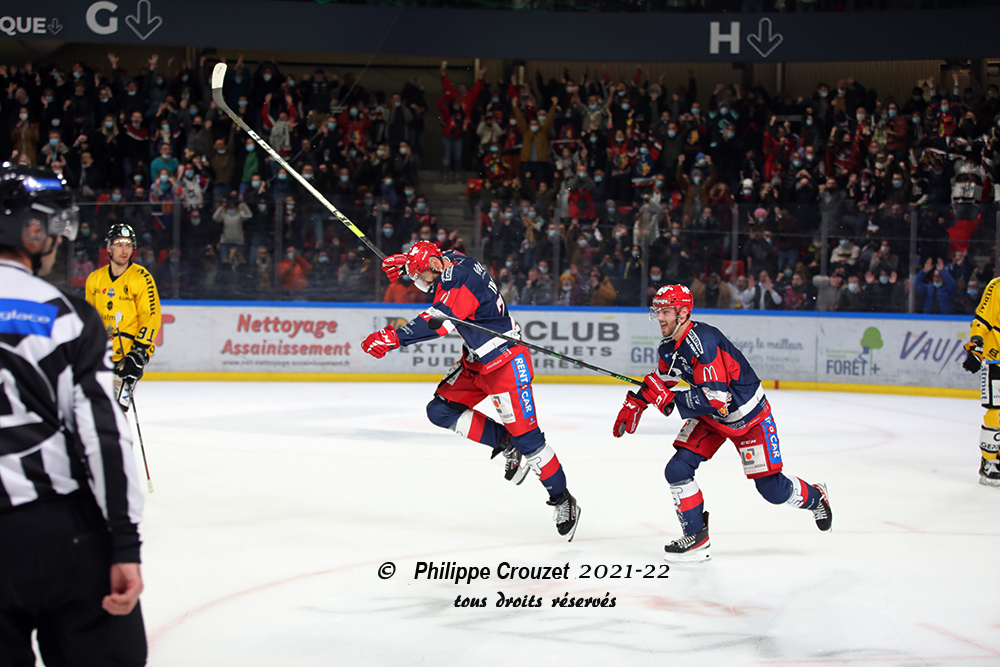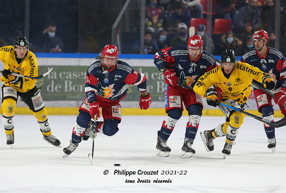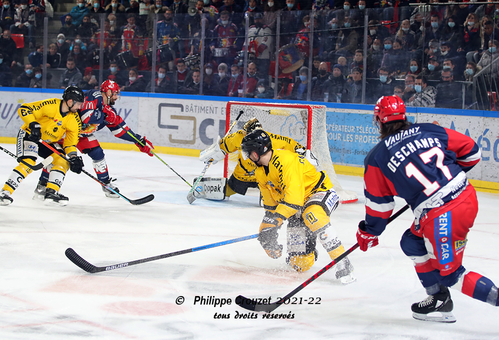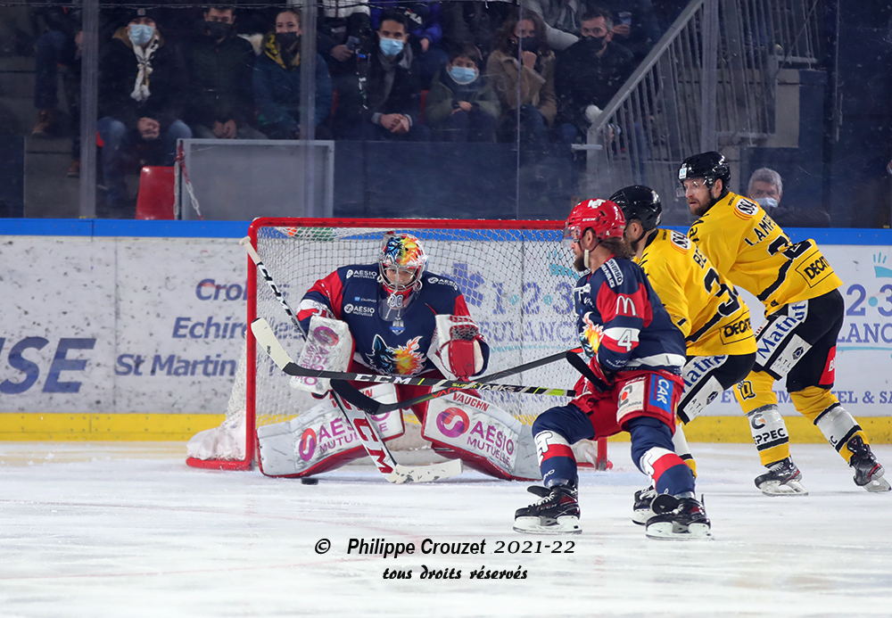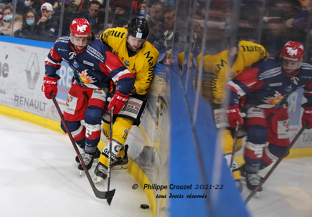 Pénalités : Grenoble 8’ (2’, 4’, 2’), Rouen 8’ (4’, 2’, 2’)