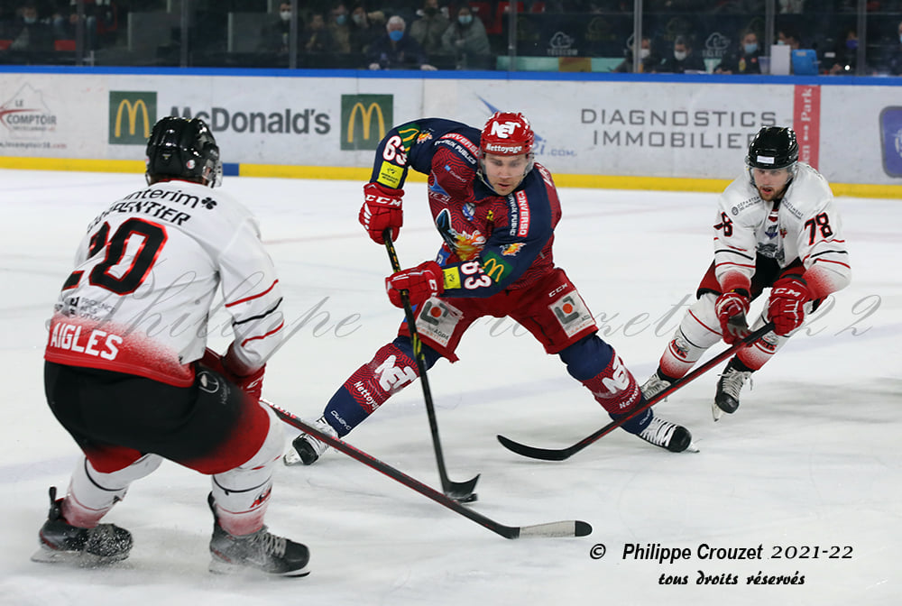 Du côté des Aigles de Nice, on retiendra le bon match de Patrik Romancik dans les cages qui a retardé l’échéance. Le but en supériorité numérique des Aigles a permis d’entretenir un temps l’espoir côté niçois mais les deux buts encaissés dans la foulée à cinq contre cinq ont définitivement enterré les espoirs niçois. Les Aigles qui vont se tourner maintenant vers deux matchs « aller-retour » face à Chamonix, deux rencontres qui vont valoir très cher en vue de la qualification pour les play-offs.