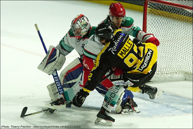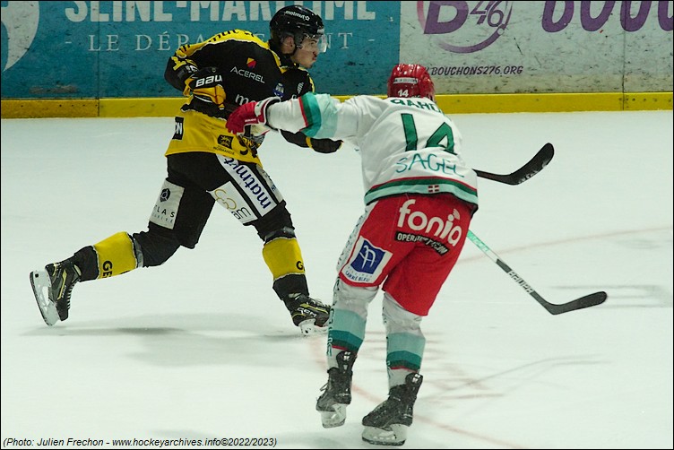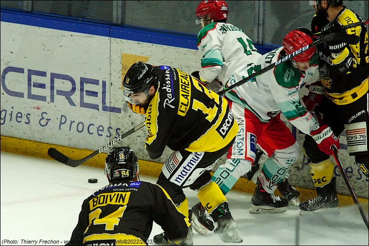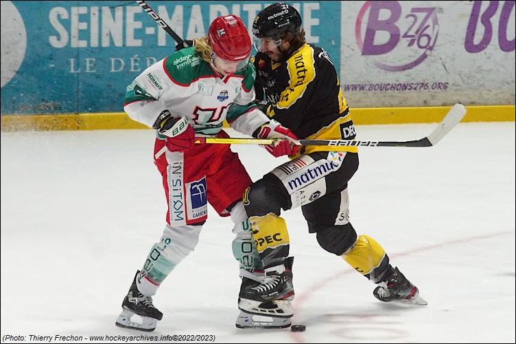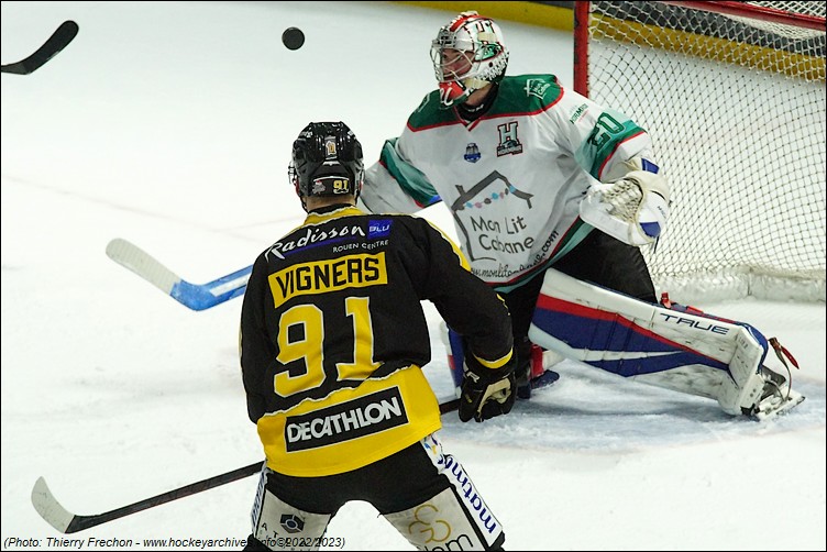 Franchement complètement à l’envers en défense, malgré une reprise à bout portant de Ranger (5’30), et la réduction du score de Dame-Malka en avantage numérique (2-1 à 7’24) en réaction aux deux premiers buts rouennais, les coéquipiers de Decock ont failli. Ils ont été dominés dans presque tous les secteurs du jeu. Les duels, les rebonds favorables, les revirements, la discipline, la vitesse, tout allait souvent dans le sens des Seino-Marins qui bonifiaient leurs temps forts avec des buts de Boivin (1-0 à 3’50 & 3-1 à 9’33), de Tessier (2-0 à 05’06) et de Lampérier (4-1 à 12’06).