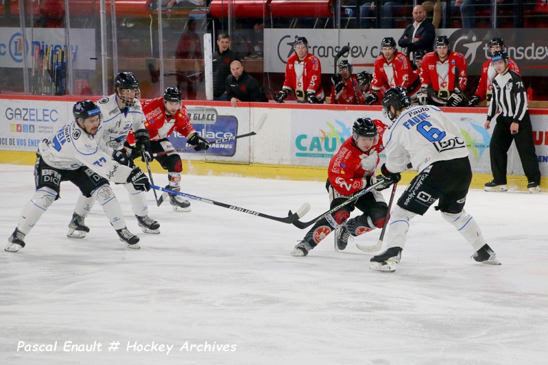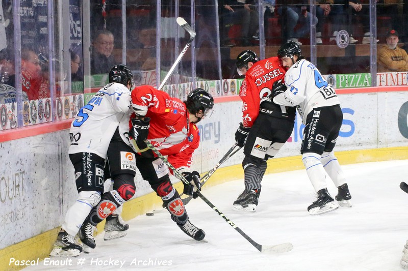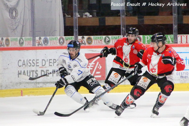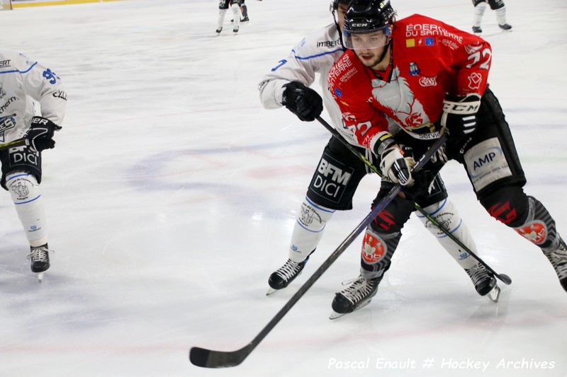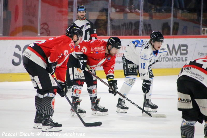 Remplaçant : Victor Bodin (G). Absents : Romain Bault, Antonin Plagnat (blessés), Jonathan Desbiens