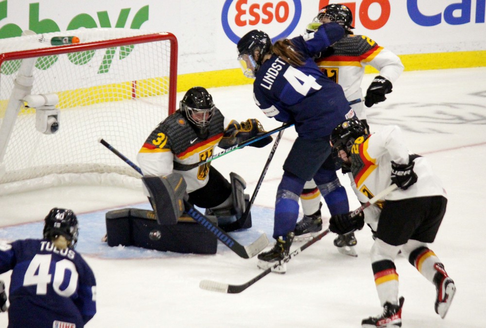 La vitesse monte d’un cran et cela suffit à dépasser la défense allemande. La percée de Nylund découpe l’arrière-garde et, si May sauve le premier tir, et le second de Sundelin, elle ne peut rien sur le deuxième rebond, pris par Vesa (2-0). La Finlande maîtrise la fin de tiers.