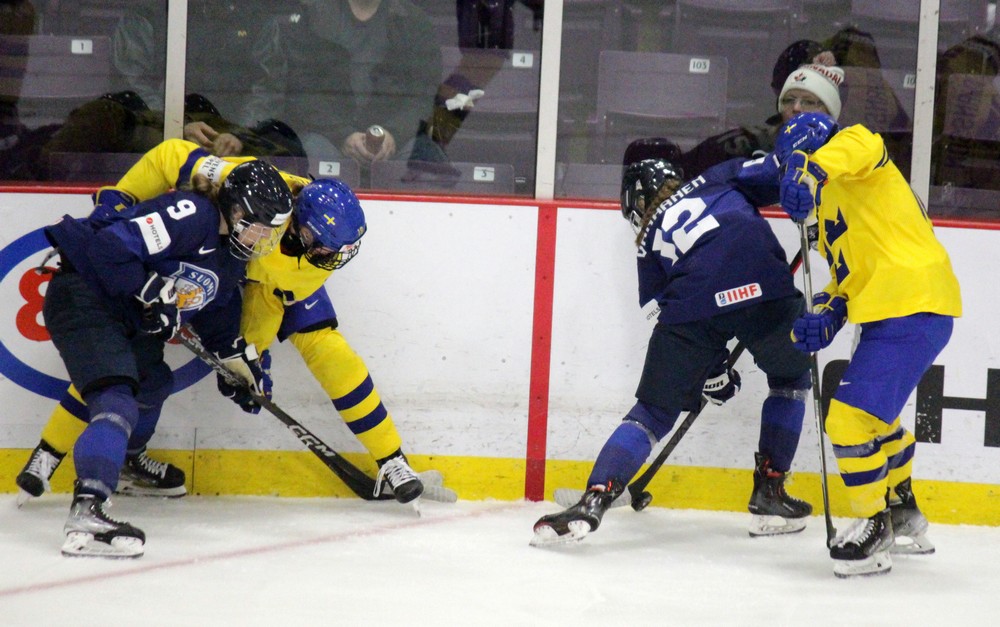 Le problème pour la Suède, c’est que leurs adversaires ne desserrent pas leur étau. Elles ont nettement haussé le ton sur cette ultime période et cela suffit à faire exploser en vol les Scandinaves. Et cela ne s’arrange pas à cinq minutes de la fin lorsque Annie Silen, dépassée par la virvoletante Emilia Visa, la charge contre la bande. La longue révision coûte une pénalité majeure de cinq minutes.
