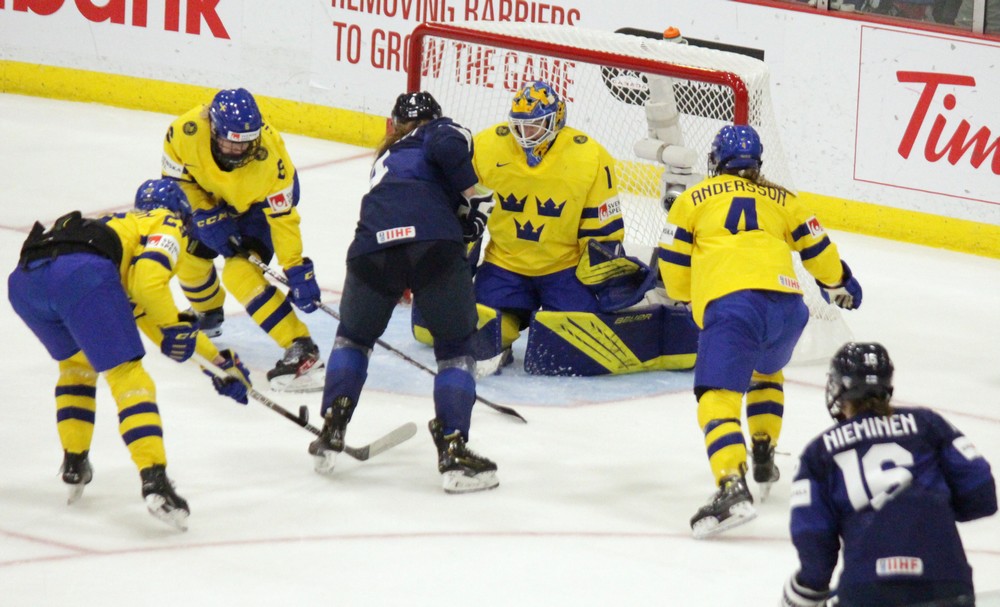 Après un quart d’heure, la Finlande installe une énorme pression sur le but de Grahn. Le palet traine dans le slot, avant de glisser jusqu’à Petra Nieminen qui lance du cercle. La mitaine de la gardienne suédoise met fin à la séquence. Sur la présence suivante, Jenniina Nylund lance de l’aile, sans que personne ne parvienne à s’emparer du rebond.