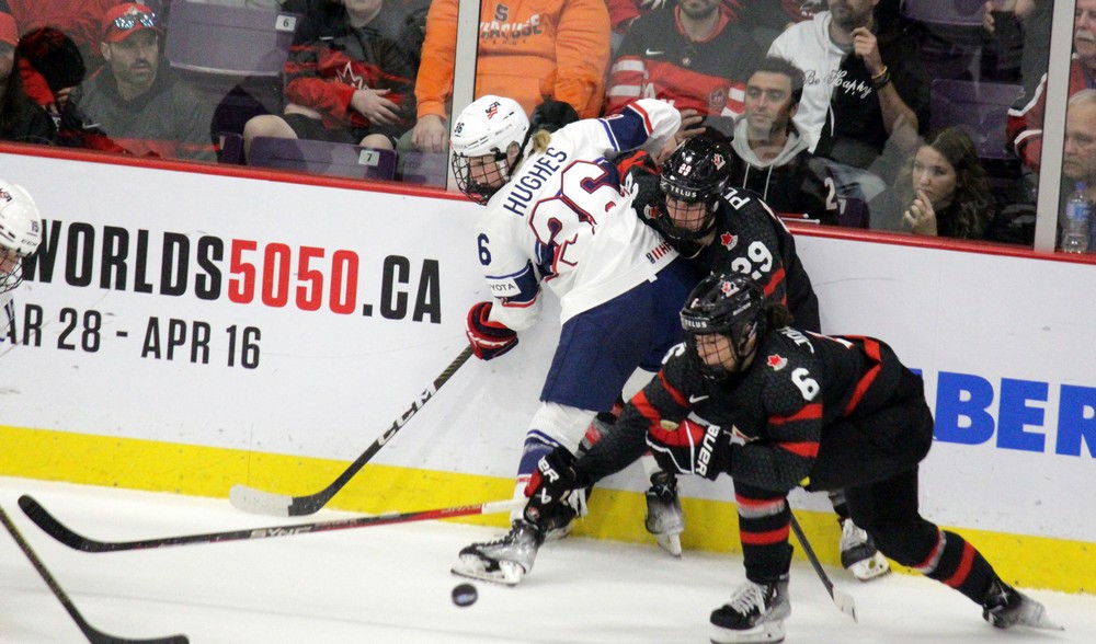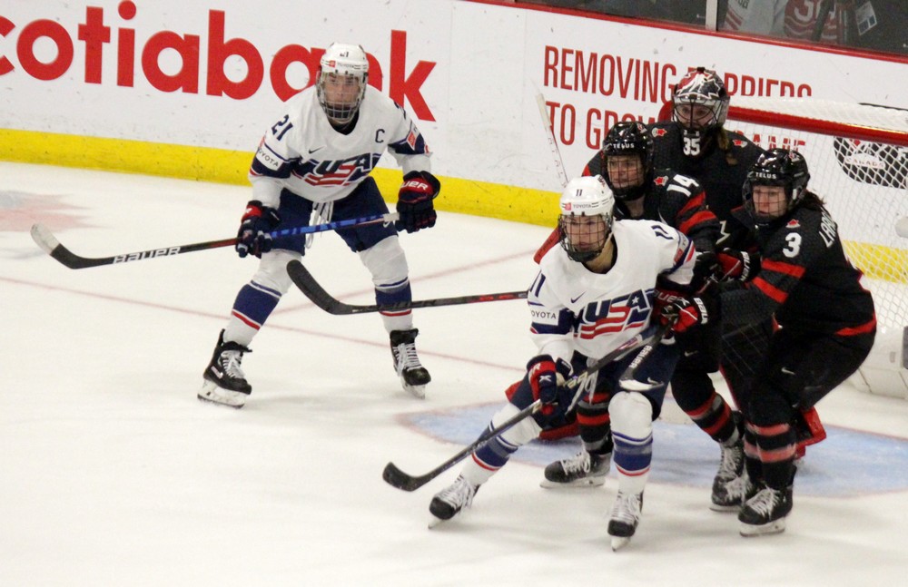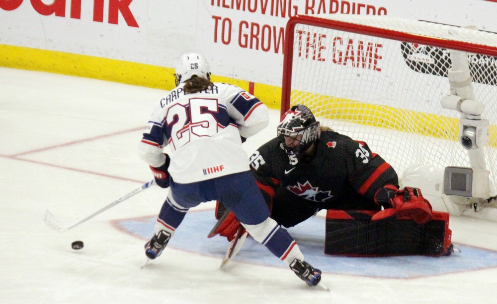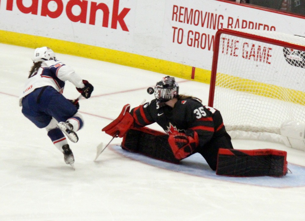 Désignées joueuses du match : Ann-Renée Desbiens (Canada) et Hilary Knight (États-Unis)