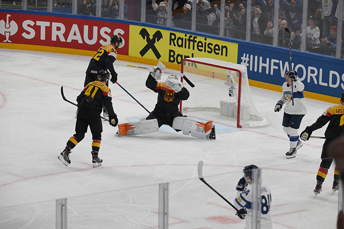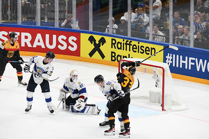 Les minutes passent, maîtrisées par la défense nordique. Strahlmeier laisse sa place à un attaquant pour les deux dernières minutes, puis Harold Kreis pose son temps mort. Cela ne donne rien, et la Finlande force même le gardien à revenir au jeu sur une mise au jeu défensive, à trente secondes du terme. Il n’y aura pas d’autre tir allemand : victoire de la Finlande, 4-3, dans la douleur.