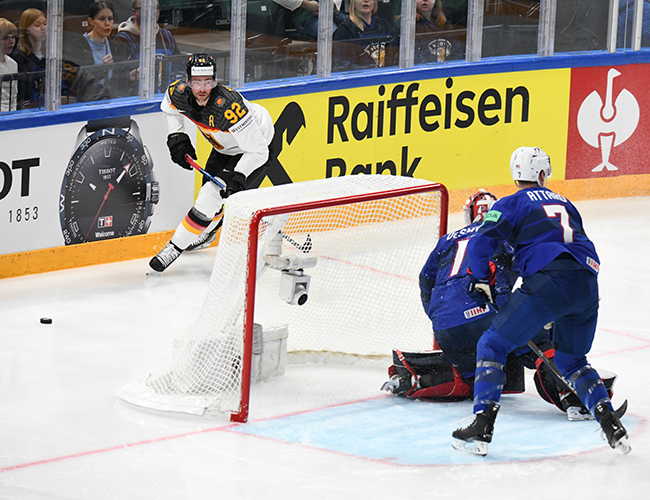 Pour autant, DeSmith doit rester vigilant : un palet cafouillé au fond revient sur Soramies plein axe, qui se heurte au gardien des Penguins. La fin de tiers est un temps fort américain, et c’est justement sur le fil que l’Allemagne piège son adversaire. Un revirement permet d’envoyer Justin Schütz en échappée, et l’attaquant de Munich bat DeSmith et l’horloge (2-1).