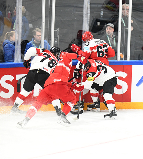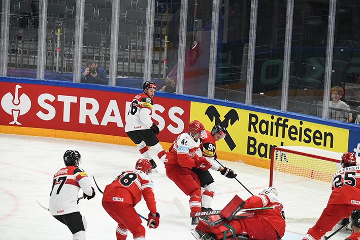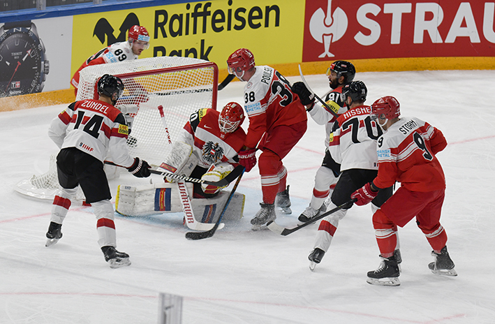 Les esprits s’échauffent à la reprise, entre Raffl et Krogsgaard, sans conséquence. Le match semble plié et l’Autriche n’a plus d’armes. Pire, elle voit Ehlers déborder et donner en retrait à Russell, qui reprend de volée (6-2).