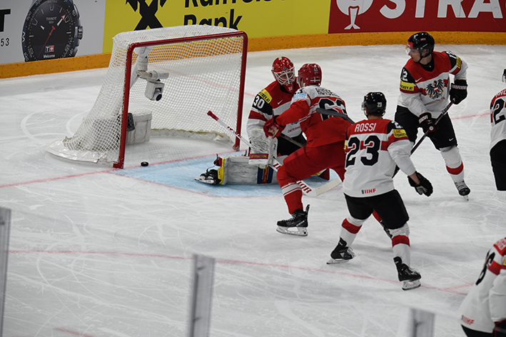 Les joueurs de Roger Bader ne baissent pas les bras et reviennent dans le match peu après. Rossi récupère derrière la cage, contourne et sert du revers Schneider lancé dans le slot (3-2). L’Autriche pousse mais son temps fort s’éteint lorsque Zundel concède deux minutes pour un faire trébucher derrière son but.