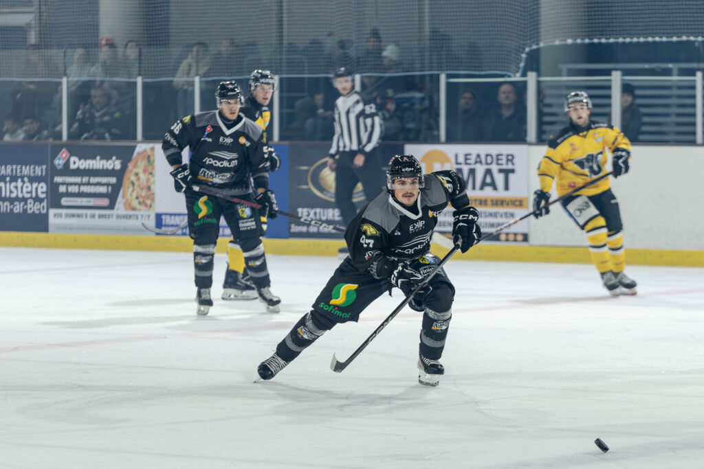 Ce but n’atteint pas la motivation des locaux, qui dominent alors la deuxième moitié du tiers avec des passes qui s’enchaînent et des tirs cadrés. La défense brestoise se la joue physique, ce qui ne fait pour autant pas peur aux Éléphants qui parviennent à approcher des cages. Mais rien ne passe, Adrien Vazzaz, même sous pression, arrête les palets les uns après les autres malgré un Hugo Nogaretto déterminé à marquer. De l’autre côté, la gardien Ewen Tran se retrouve lui aussi sous pression avec les Finistériens qui tournent autour de ses cages. Nicolas Favarin tente de tirer depuis la ligne bleue, mais le palet passe à côté des cages et est rapidement récupéré par Hugo Nogaretto et Sacha De Smitt. Une défense finistérienne solide, des joueurs savoyards bien placés pour marquer, mais rien ne rentre. Maxime Toukmatchev, l’ancien de la maison, n’hésite pas à aller au contact pour récupérer le palet, permettant à ses coéquipiers de tirer. Mais que le palet arrive dans son gant, sur sa crosse ou sur son casque, Adrien Vazzaz est déterminé et vigilant pour éviter le deuxième but.